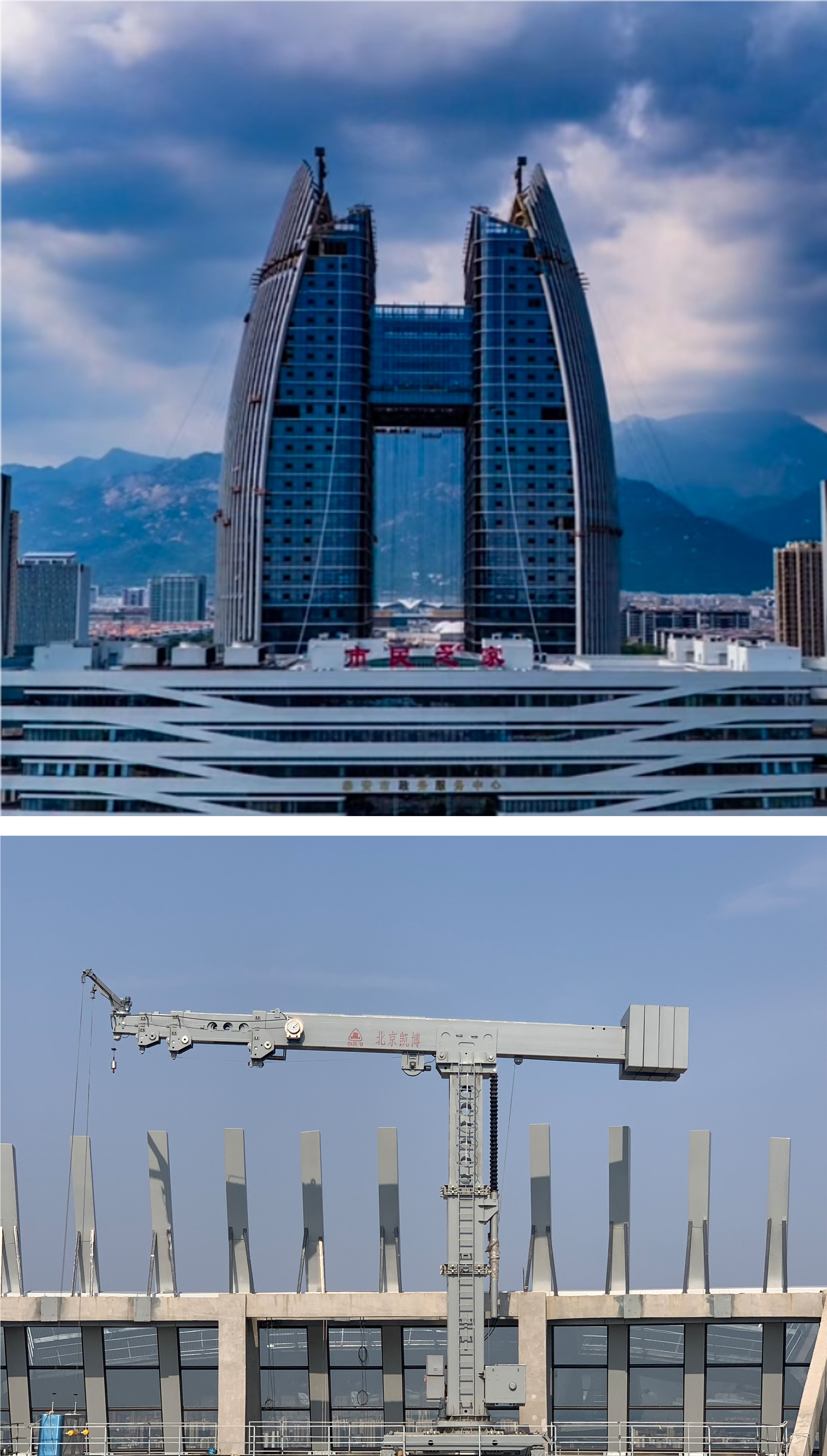 近日,北京凱博擦窗機械科技有限公司(以下簡稱“凱博擦窗”)自主研發(fā)生產(chǎn)的大型擦窗機亮相泰安金融商務(wù)中心雙子塔,為這座地標性超高層建筑提供高效、安全的外立面清潔維護服務(wù)。