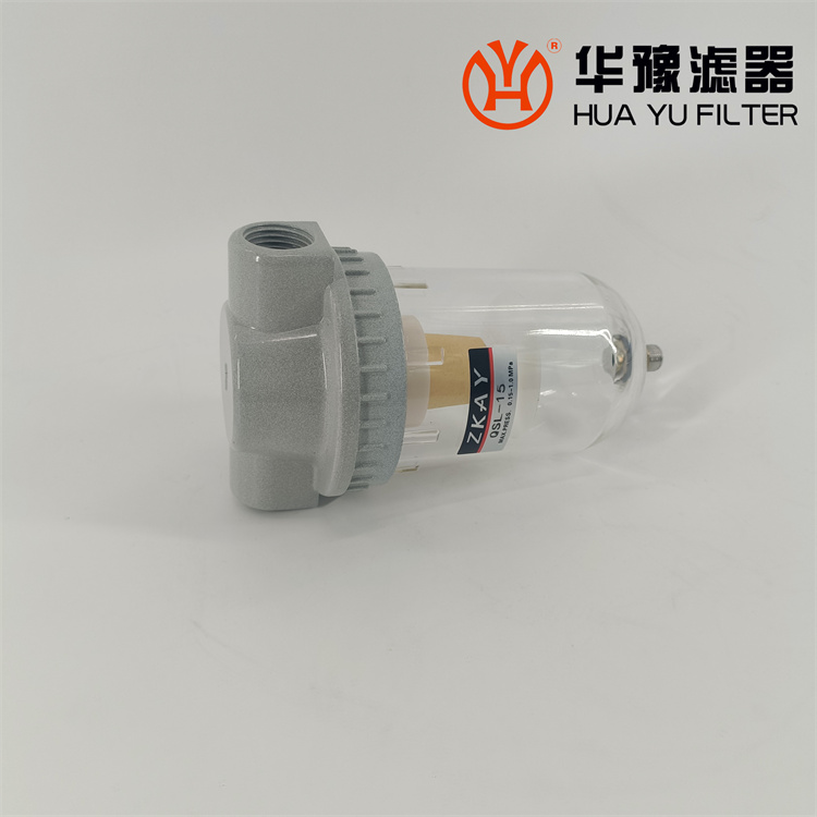 QSL、QSLd (帶保護罩)系列空氣過濾器一、特點:1、結(jié)構(gòu)簡單,應(yīng)用廣泛。2、采用旋風(fēng)葉片分離水分及雜質(zhì)。不銹鋼微孔截留塵埃。3、存水杯采用透明的聚碳酸脂制成,不僅能滿足耐壓要求,并能清晰地觀察積存的水量。4、金屬保護罩可保護存水杯免受外力撞擊導(dǎo)致破碎。